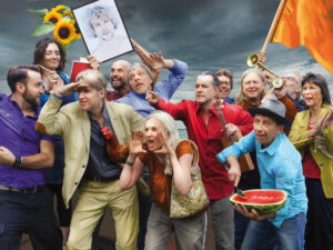 Waren es anfangs fast ausschließlich instrumentale Stücke, die die Berliner, deren Bandnamen man nicht allzu wörtlich nehmen sollte – weder handelt es sich hier um richtige Hippies, noch sind es selten genau 17 – zum Besten gaben, beweisen sie seit Jahren, dass sie überdies wunderbar singen können. Und das sogar mindestens dreisprachig: auf deutsch, französisch und englisch. Ihre Lieder sind gemeinhin eine ausgewogene Mischung aus verträumten, spitzbübischen, temperamentvollen aber auch dunklen, melancholischen Stücken. Oft mit einem kräftigen Hauch Klezmer ummantelt, immer irgendwie vertraut, meist zum Tanzen, wenigstens zum Mitwippen prädestiniert. Live wechseln einzelne Bandmitglieder immer wieder ihre Instrumente. Eben noch am Akkordeon und nun schon die Flöte im Anschlag. Umringt von Geigen, Zugposaunen oder einem Kontrabass.
