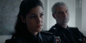 Rund die Hälfte des Films widmet sich Verhör-Situationen im Polizeipräsidium bzw. Befragungen an den Haustüren der Anwohner sowie Ermittlungen im Schlachtbetrieb. In allen drei Situationen kommt es dabei zu teils absurden und komischen aber auch sehr ernsthaften Inhalten. Besonders nachhallen wird bei vielen Zuschauern, mit welchen Aufgaben eigentlich Tierärzte/Veterinäre, die sich ja offiziell unter anderem um das Tierwohl sorgen sollten, in Schlachtbetrieben betraut sind. Noch unbekannter dürfte bei vielen Kinogängern sein, dass auch in der sogenannte Bio-Landwirtschaft Knochen und Borsten als Düngemittel auf die Äcker kommt, welches seinerseits aus der konventionellen Tierhaltung stammt. Für Bio-Hornspäne gibt es nämlich tatsächlich auch im echten Leben bis heute keine so eindeutigen Kriterien. Im zweiten Handlungsstrang mit der jungen Journalistin geht es um die Verstrickungen der Politik – ob lokal oder höher – mit “Unternehmern”, um Profit und Habgier.