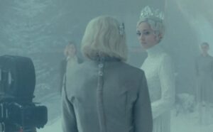 Den Spielfilm „Herz aus Eis“, der mit einer Art Blick hinter die Kulissen einer fiktiven Schneekönigin Verfilmung kokettiert, könnte man am einfachsten als Weihnachtskino für Erwachsene umschreiben. Doch es steckt viel mehr in dieser mit Sehgewohnheiten brechenden Interpretation von Andersens Werk durch die französische Autorenfilmerin Lucile Hadžihalilović. Eine Kurzkritik.