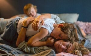 Der Film ist noch keine 15 Minuten alt, da sagt der fünfjährige Elliott (César Botti) zu seinem “Papa” auf dessen Einleitung, dass er ihm etwas Trauriges sagen müsse, “Ist sie tot?” – und er liegt leider richtig. Seine Mutter, die tags zuvor mit zu früh geplatzter Fruchtblase ins Krankenhaus kam ist völlig überraschend gestorben, das neue Schwesterchen ist wohlauf. An jenem verhängnisvollen Tag hatten Alex und Cécile den Jungen noch bei der von Valeria Bruni Tedeschi (2022 bekam sie einen César für die beste Hauptdarstellerin in La Fracture; sie ist nicht nur eine famose Darstellerin, sie ist auch Regisseurin, etwa von “Eher geht ein Kamel durchs Nadelöhr…”) verkörperten Nachbarin Sandra geparkt, die vermeintlich so gar keinen Zugang zu Kindern hat. Selbst habe sie keinen Nachwuchs und nicht einmal eine feste Beziehung weil sie dafür nicht stark genug sei, hatte sie dem wissbegierigen Elliott als sie die Obhut für ihn hatte, nüchtern erklärt: