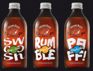 Alles was zum Einsatz kommt ist entsprechend 100% bio – und auch fair gehandelt: die maximale Dosis Coldbrew-Koffein aus Bio-Fairtrade Arabica: 32mg/100 ml purer Biofruchtsaft 6-8% Zucker – weniger als in Cola und anderen Energydrinks. Abgerundet wird mit einem Schuss Kohlensäure “brizzelig, spritzig. Fresh halt”, wie der Hersteller betont, der auch gleich STellung zu der Frage warum „inspired by Mount Hagen?“ bezog, was schließlich jede der handlichen Glas-Flaschen einer Freshfläsch ziert: “Weil das ein Bio-Fairtrade-Kaffee ist, der nicht nur ausgesprochen lecker ist. Mount Hagen ist quasi ein Öko-Pionier. Seit 1986 wird hier mit einer ordentlichen Portion Sturheit und viel Respekt für Umwelt, für die Kaffeefarmer ökologisch angebauter Kaffee hergestellt. Wir machen aus dem Mount Hagen Papua Neuguinea einen sehr aromatischen Coldbrew, quasi als Basis. Was wir machen ist kein Eiskaffee, auch kein langweiliger kalter Kaffee. Das ist eine Methode, Kaffee besonders intensiv, schön herb mit opulenten Aromen und feinen Säuren aufzugießen. Damit er wirkt – und perfekt bittersweet mit unseren puren Bio-Fruchtsäften gemixt werden kann.”