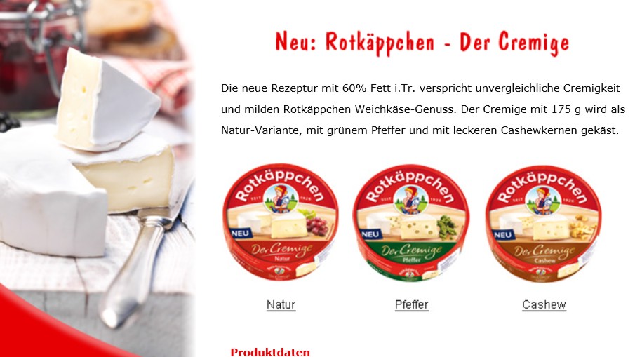 Wenn der Markenname Rotkäppchen fällt, denken viele – längst nicht mehr nur im Osten des Landes – an Sekt, penetrante TV-Werbung für ein dennoch sehr gutes Produkt “sei Dank”. Dabei steht das taffe Grimmsche Mädchen auch für Weichkäse als Namenspatronin – und das bereits seit auch knapp 90 Jahren! Doch wer Camembert nur in der panierten Aufbackvariante kennt oder an vergleichsweise (zu) starken Eigengeschmack denkt, verwechselt am Ende etwas mit Gorgonzola oder kennt insbesondere die cremige Produktlinie besagter Weißschimmelkäse-Schmiede aus NRW nicht.