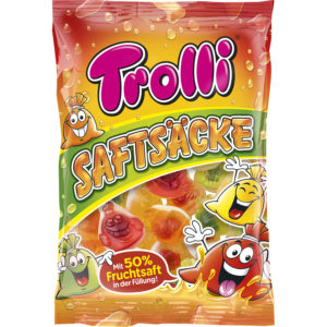 Nicht nur, dass der Süßwarenhersteller Trolli stimmig anmutend in einen “Bissen” jeweils zwei Geschmäcker mixt – namentlich Erdbeer-Himbeer, Passionsfrucht-Mango, Ananas-Grapefruit und Birne-Apfel -, das neue Produkt “Saftsäcke” komme tatsächlich auch noch mit einem 50% Saftanteil daher.